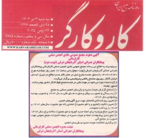 PDFپرینت آگهی دعوت مجمع عمومی عادی انجمن صنفی کارفرمائی پیمانکاران عمرانی آذربایجان شرقی (نوبت دوم) – فایلpdf