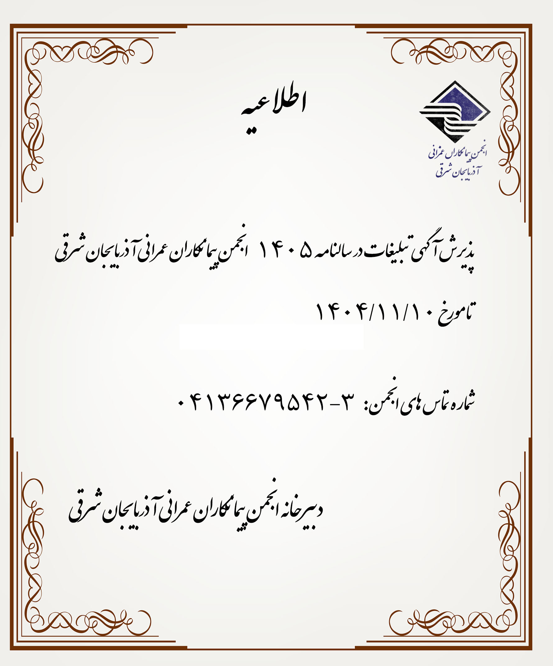 پذیرش آگهی تبلیغات در سالنامه ۱۴۰۵ انجمن پیمانکاران عمرانی آذربایجان شرقی