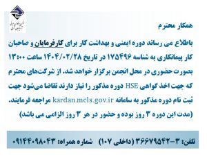 برگزاری دوره ایمنی و بهداشت کار برای کارفرمایان و صاحبان کار پیمانکاری در اردیبهشت ماه ۱۴۰۴