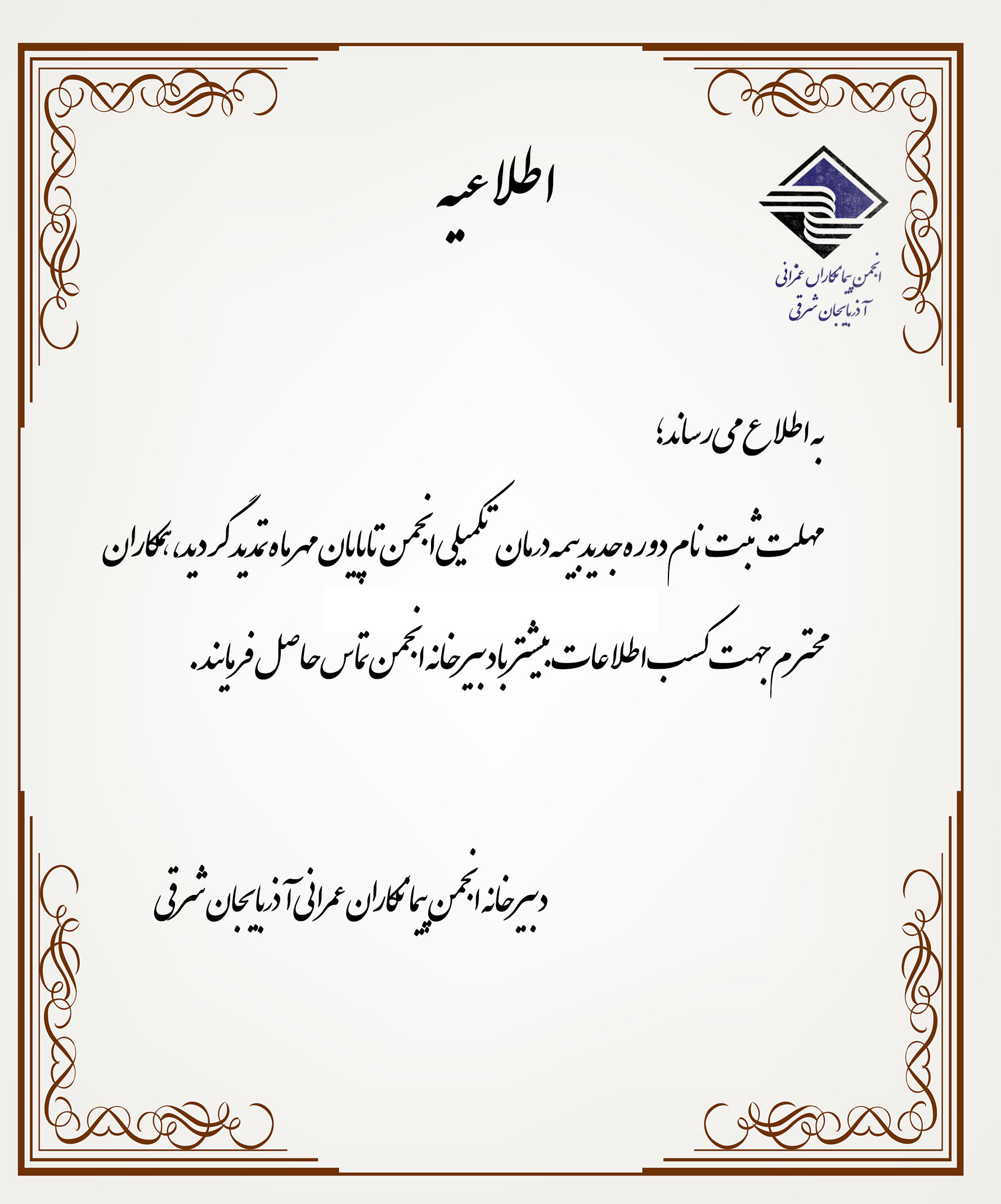 تمدید مهلت ثبت نام بیمه درمان تکمیلی انجمن